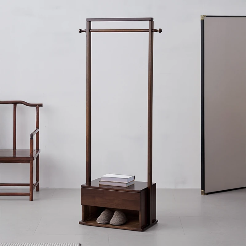 Elegant New Chinese Style Solid Wood Floor Coat Rack – Perfect for Bedroom, Living Room, or Bedside Use. Ideal for Hanging Clothes at Night, Combining Functionality with Aesthetic Charm.