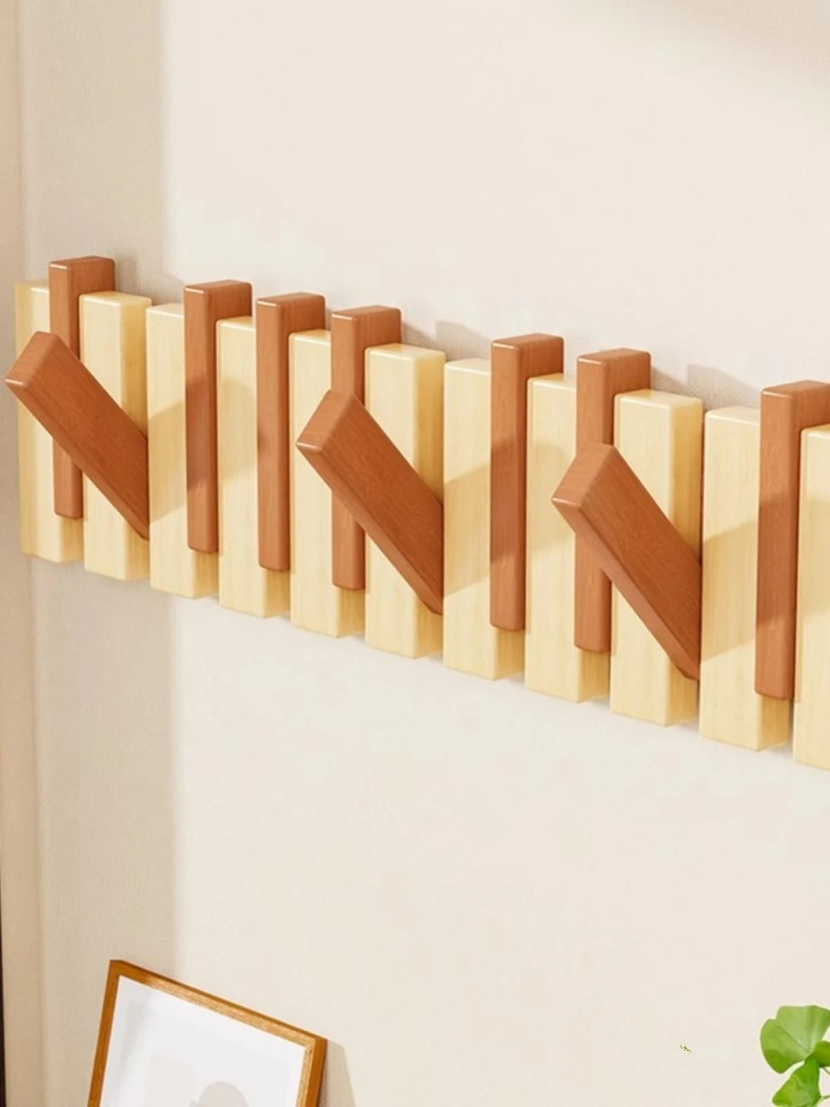 ピアノキー型壁掛けハンガー - おしゃれな玄関の必需品!ドアの裏側や壁に簡単取り付け、穴あけ不要の実木製衣類フック。あなたの入室をスマートに演出します。